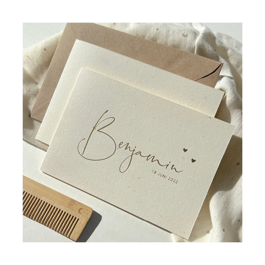 Het kan zijn dat het ontwerp niet helemaal gelijk is aan het kaartje op de website. Het is helaas onmogelijk om van alle kaartjes samples te maken. Omdat de drukplaten voor het maken van de kaarten erg kostbaar zijn en het stellen van de machine veel tijd kost maken we geen gepersonaliseerde proefkaarten. Het is daarom niet mogelijk om een sample te ontvangen met een door jullie gekozen naam en/of ontwerp.